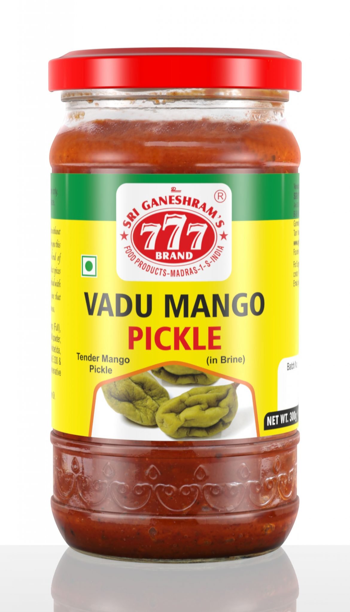 Typical Kerala style Pickle made from small tender mangoes and pickled in brine using spices blended and seasoned with mustard. Tastes very good with curd rice.