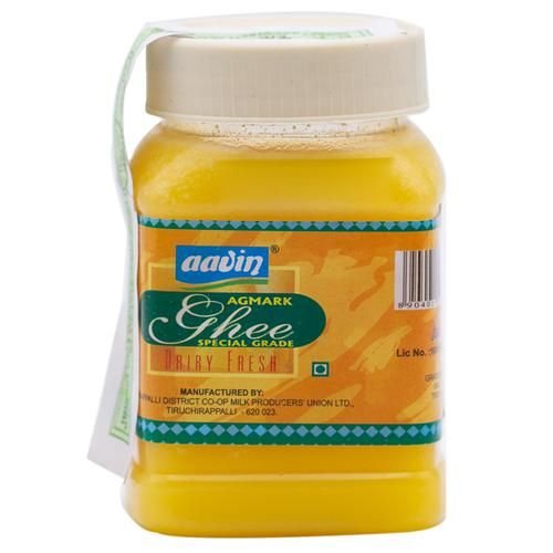Aavin Ghee is made using cows milk and helps add a rich taste and a delicious aroma to food. This pure and healthy desi ghee is a lactose-free product.